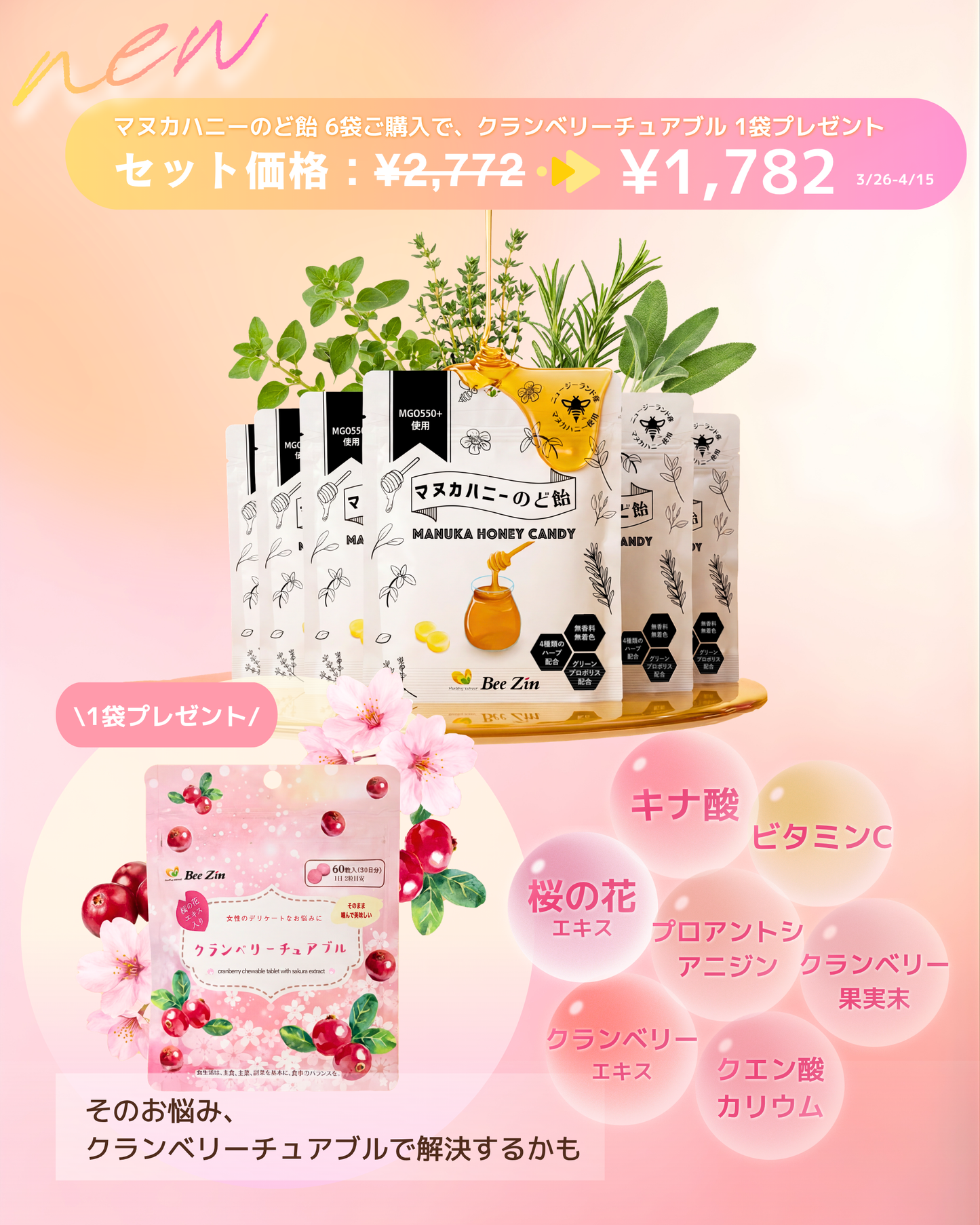 のどの調子や乾燥が気になるときにマヌカハニーがのどを優しく包み込みます。