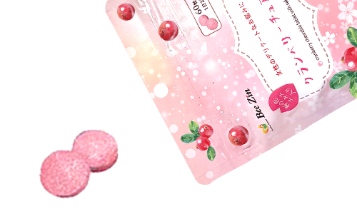 噛むとクランベリーの甘酸っぱさがふわっと広がります。噛んで食べるので飲み込みやすくなっています。チャック付きアルミパックに入っているので、持ち運びにも便利です。かばんから出して食べても可愛らしいピンク色のパッケージとチュアブルに仕上げました。