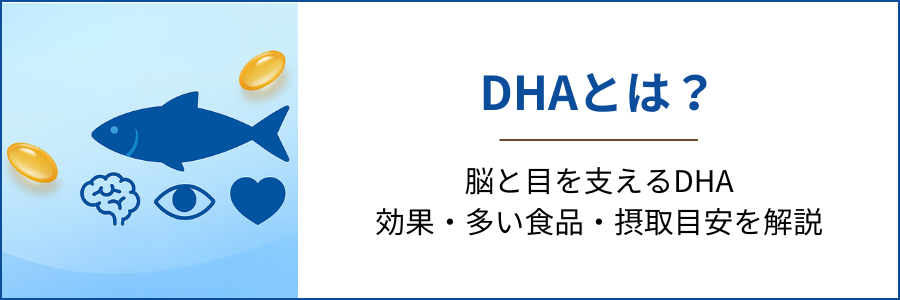 DHA(ドコサヘキサエン酸) は、オメガ3系脂肪酸のひとつで、青魚(マグロ、サンマ、イワシ、サバなど)に多く含まれる栄養素です。脳や目の網膜、母乳などに多く含まれており、体内ではほとんど合成できないため、食事から摂取する必要がある必須脂肪酸です。